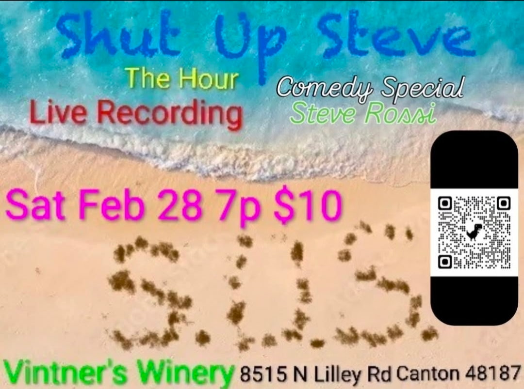 Get ready for a night of big laughs and great wine at Vintner’s Winery! On Saturday, February 28th at 7pm, we’re hosting a special live recording of Shut Up Steve: The Hour, a comedy special from the hilarious Steve Rossi.
